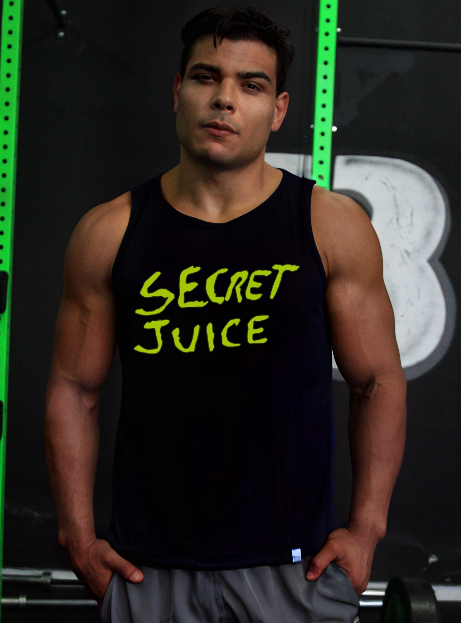 A Regata Dry Fit Secret Juice é feita com Dry Fit importado, acabamento  reforçado,  etiquetas personalizadas, com uma estampa única para Você que é fã do Paulo Costa " Borrachinha".